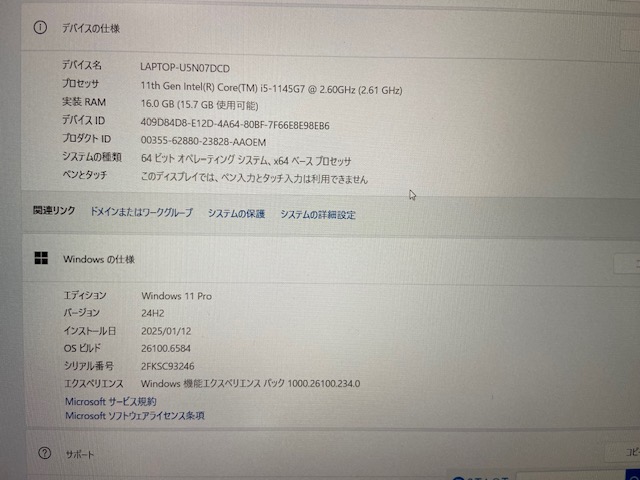 OSはWindows11 Pro(24H2)で最新版のクリーンインストールです。