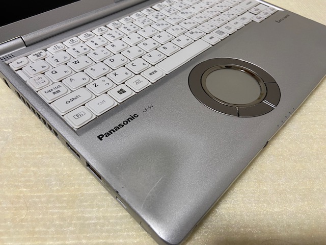 天蓋に小さな凹みがあり、パームレストに色あせがあり、いくつかのキーに印刷が薄いです。(写真と動画の確認をお願いします。)