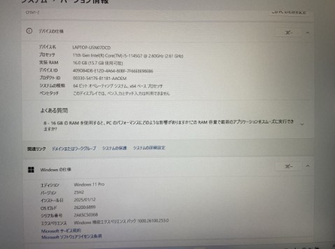 OSはWindows11 Pro(25H2)で最新版のクリーンインストールです。