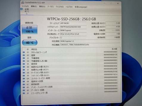 新品のSSDの使用時間はゼロ時間で30秒ほどで起動します。