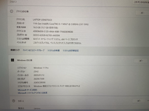 OSはWindows11 Pro(25H2)で最新版のクリーンインストールです。