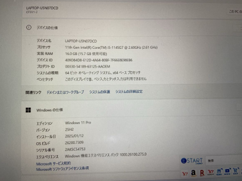 OSはWindows11 Pro(25H2)で最新版のクリーンインストールです。