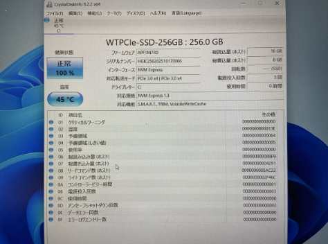 新品のSSDの使用時間はゼロ時間で30秒ほどで起動します。